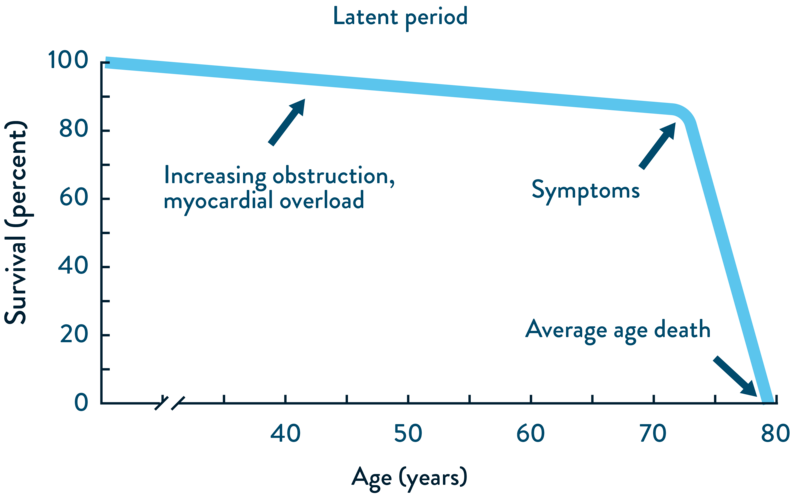 AS is a progressive disease. While patients with AS may initially be asymptomatic, further progression is typically associated with symptoms and poor prognosis.13,14 AS is associated with a significant risk of mortality, and survival is markedly reduced after the onset of symptoms.15