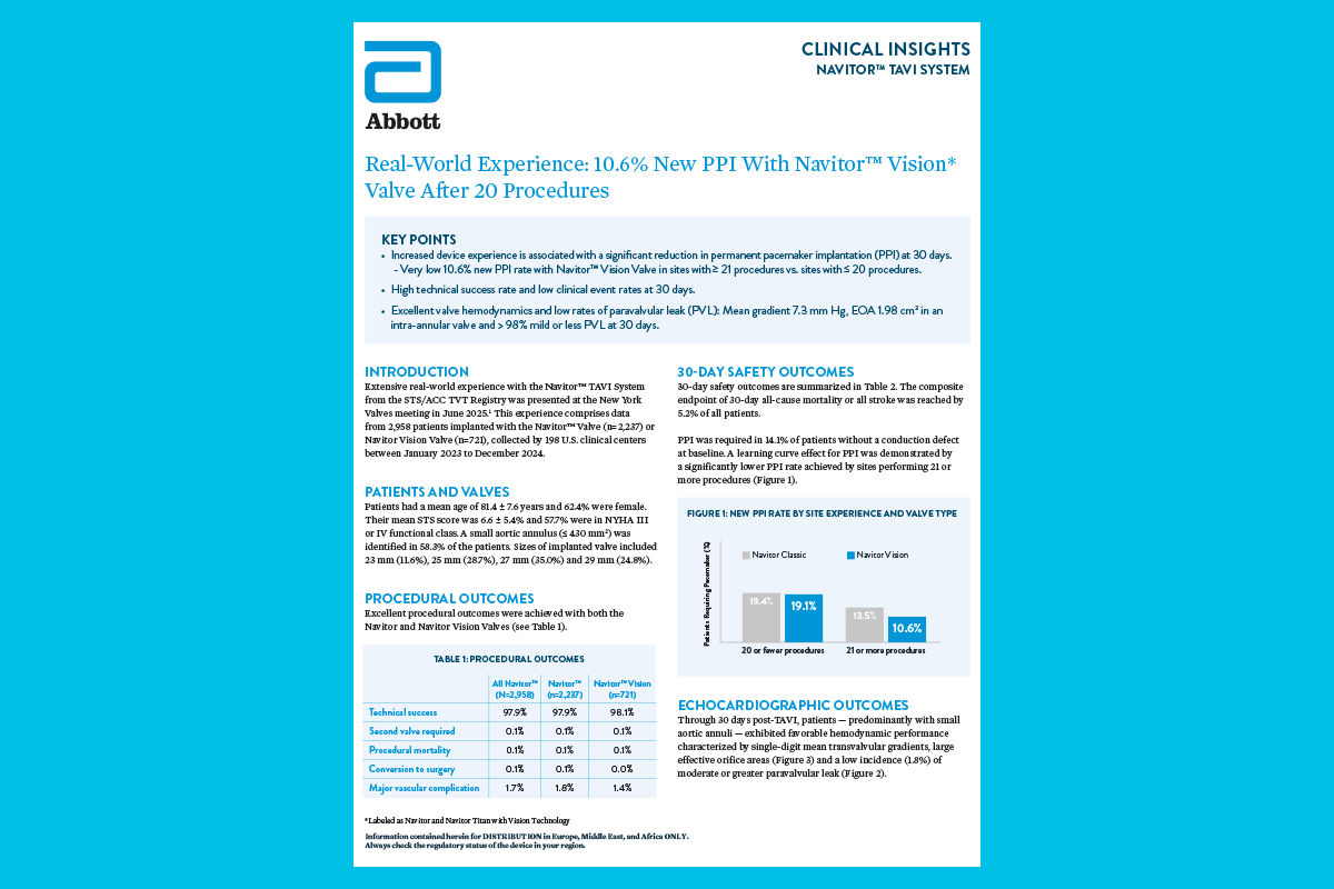 Real-World Experience: 10.6% New PPI With Navitor Vision* Valve After 20 Procedures
